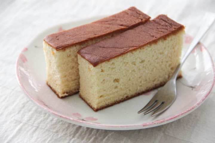 Kasutera is a traditional Japanese sponge cake prepared with sugar, flour, eggs, and starchy syrup. This is a Nagasaki specialty that mostly uses egg foam with no added butter or oil. It has a moist and spongy texture.