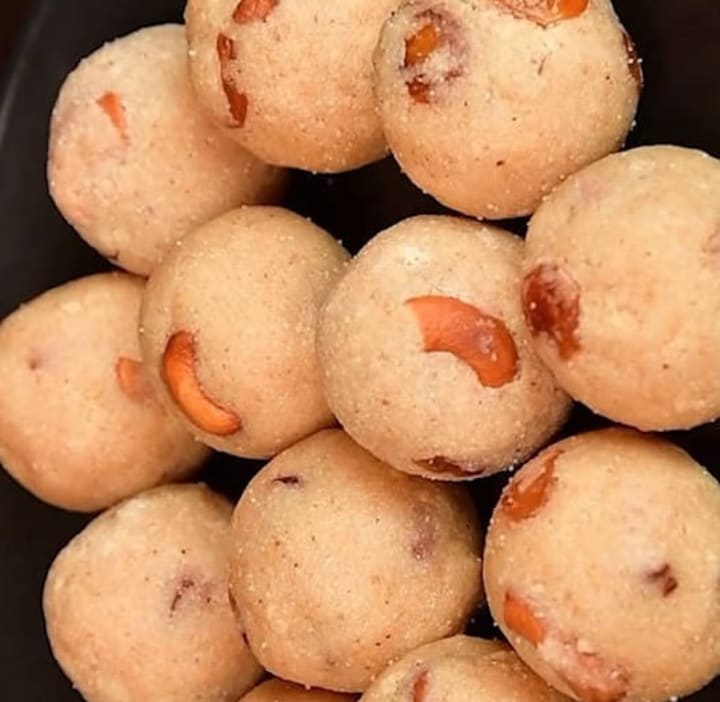 Rava Laddu is a popular sweet dish from South India made from semolina (rava), sugar, and ghee. The dish is often made during festivals and special occasions.