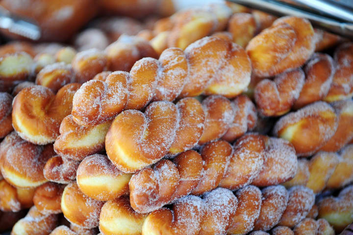 Donuts are a typical American treat that you can find just about anywhere. The Korean version of donuts, called kkwa-bae-gi, is a twisted dough that is fried and dusted or dipped in sugar. Sometimes they are filled with items like red bean paste or custard, or made with glutinous rice flour, but they're a great thing to pair with a cup of hot coffee or tea.