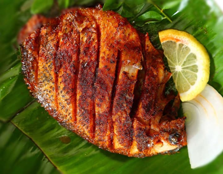 Kerala is known for its fish and marine life, primarily due to the backwaters of Alappuzha (Alleppey). This is often a delicacy enjoyed on a relaxing trip aboard a house boat overlooking the scenic countrysides of the state. The fish itself is coated with a thick paste made up of chillies, ginger, garlic and other condiments which is then covered in a fresh banana leaf and fried in oil. The end product is a delicious and crusty skin followed by a tender meat, the taste of which is indescribable. A must try.