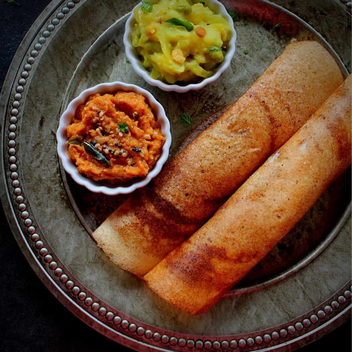 1. Dosas are crepes that are as thin as paper - A dosa is a traditional breakfast food made of fermented rice and lentil batter that resembles a crispy thin crepe. It's served with sambar (hot lentil soup) and coconut chutney.