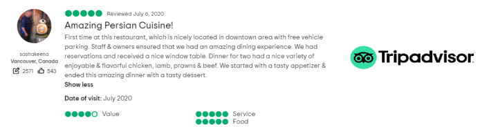 Cuisines: Persian/Iranian, Mediterranean, Middle Eastern
