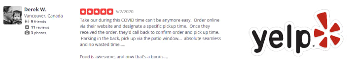 Features: Outdoor dining, Patio/Outdoor Dining, Takeout, Delivery, Wheelchair accessible entrance, Wheelchair accessible parking lot, Wheelchair accessible restroom