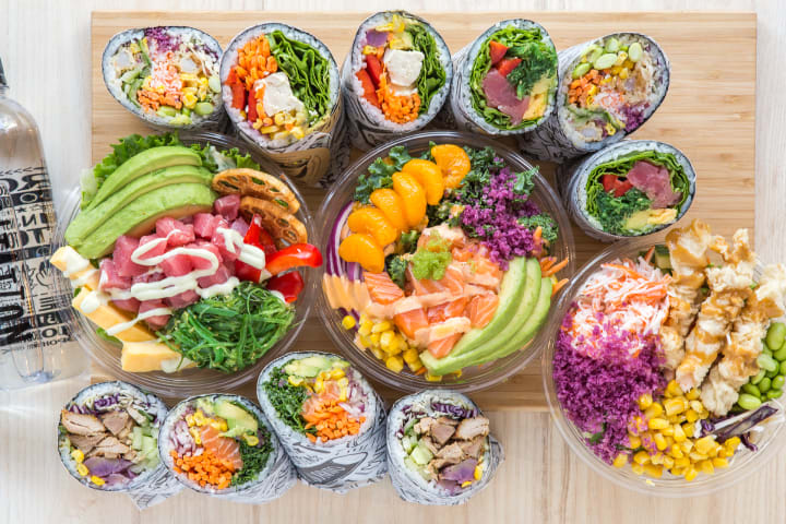 Their menu includes lots of things, which even lets you make your combination. They have Teriyaki chicken, Korean beef, Miso Salmon Sushi Burrito, Umami Salmon Sushi, California Roll poke bowl, and many other foods. The good thing about their menu is that they have added the Calorie value next to the name to control your Calorie.