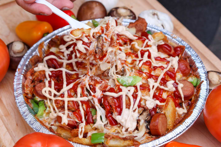 It would be best if you tried to have the buffalo chicken poutine, and it is so good. Stop looking for a place to eat and come to Mean Poutine!!