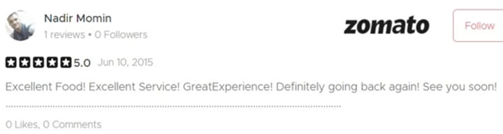 Zomato rate: -