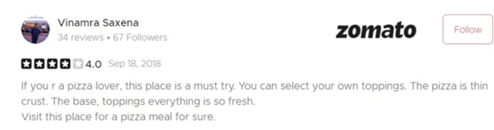 Zomato Rating: 3.4