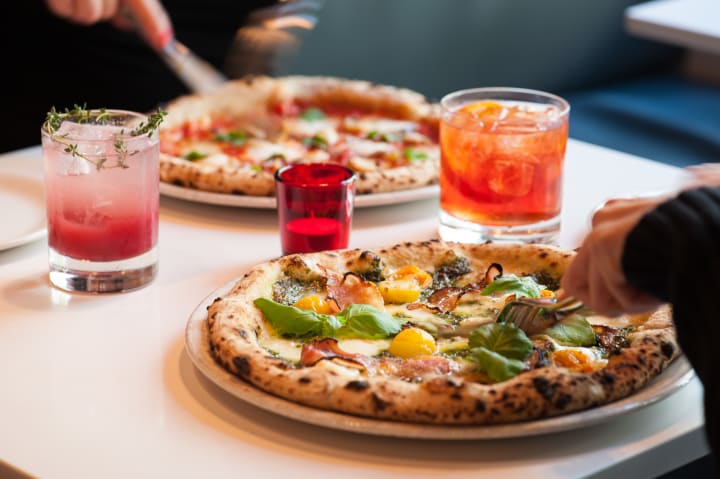 The food is impeccable. You can have a Margarita pizza, a Napoletana pizza, and the Cavolo Nero e Funghi - all three are excellent. Their olives are warm and so good. Order to share a couple of salads, and they are also great. Everything is of high quality and tasted amazing.