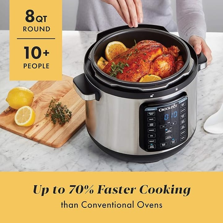 In conclusion, the Crock-Pot 8-Quart Multi-Use XL Express Crock Programmable Slow Cooker and Pressure Cooker with Manual Pressure, Boil & Simmer, Stainless Steel represents the epitome of convenience and versatility in modern cooking appliances. Its large capacity, multi-functional capabilities, and user-friendly design make it an indispensable tool for any kitchen. Whether you're looking to save time, enhance the nutritional value of your meals, or simply enjoy the flexibility of various cooking methods, this appliance delivers on all fronts.