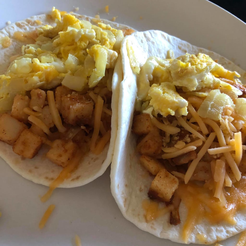 - Serve your potato mixture over tortillas or hard shells, and add your toppings! I make mine with cheese, extra cooked onions, and sometimes scrambled eggs.