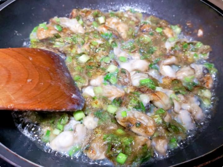 Last Wednesday, my daughter’s friends came over. When I served this oyster omelette, they polished off every last grain of rice! The outer layer—crispy from the sweet potato starch—gives way to juicy oysters bursting with briny sweetness, all wrapped in eggy, garlicky goodness. Even a royal feast couldn’t compete!