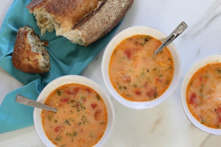You will never taste anything in your life as richly delectable as this soup combined with fresh out of the oven buttered white bread and a dollop of sour cream.