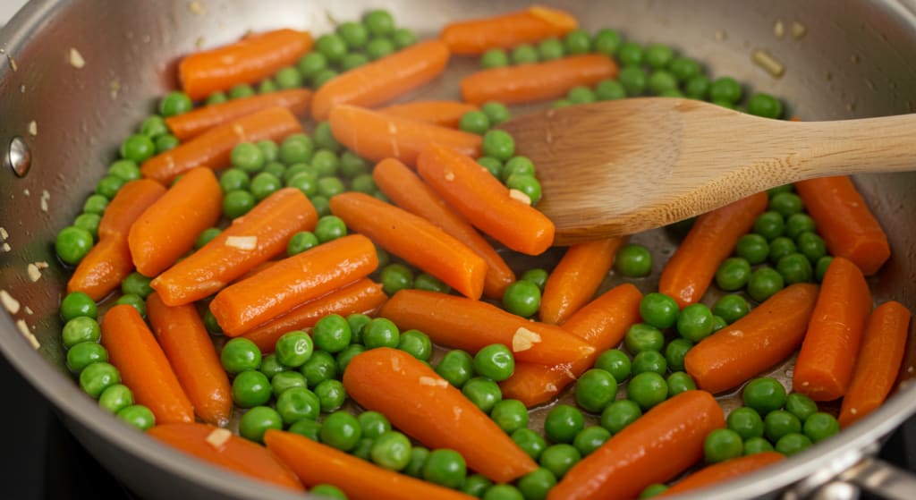 Another critical point: cook peas and carrots separately before combining them. Since they have different cooking times, this prevents overcooking one while waiting for the other to finish.