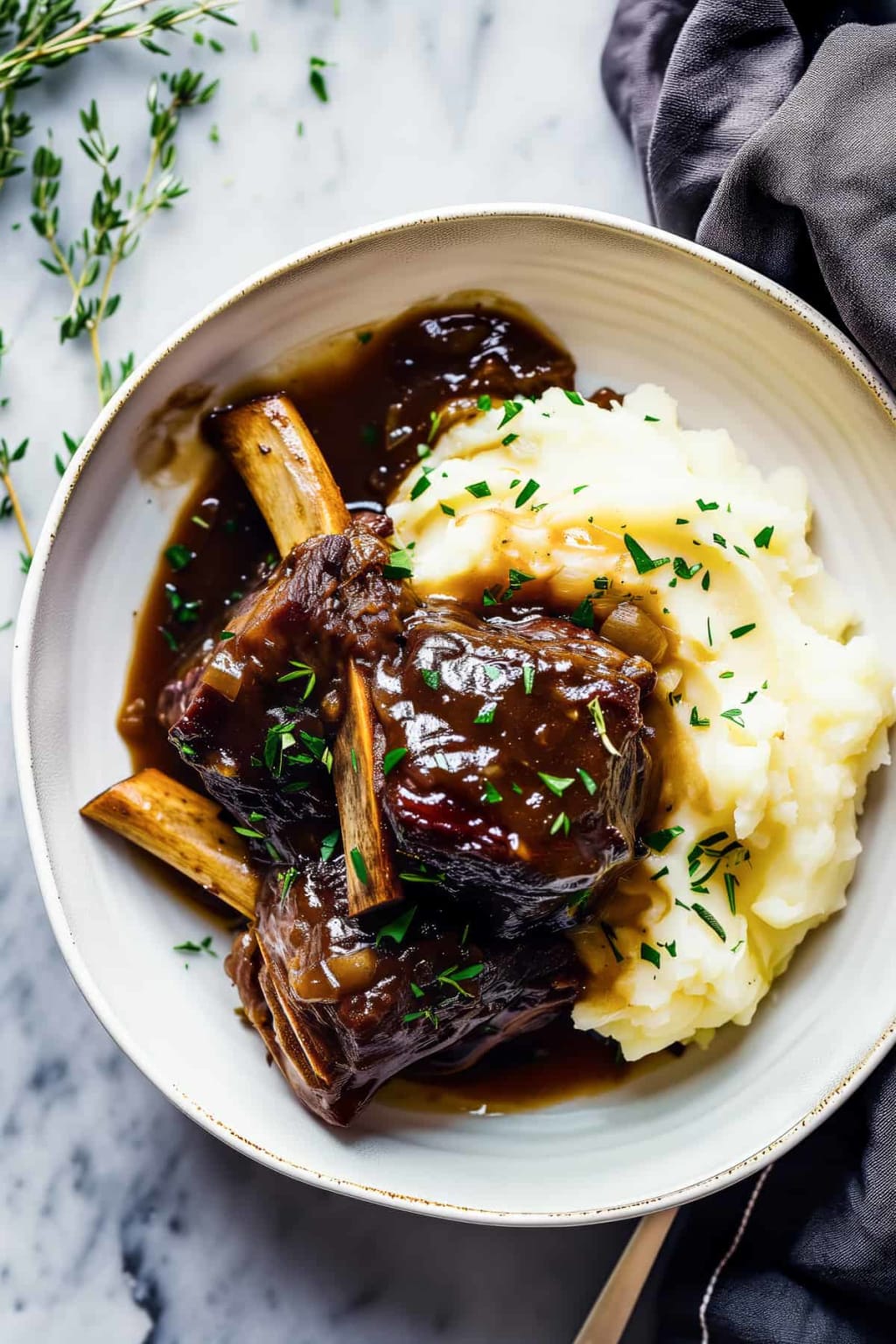 Return those browned short ribs (and their juices!) to the Dutch oven. Add some thyme and bay leaves for a little herbal sophistication. Partially cover the pot, pop it in the oven, and let it cook until the beef is so tender it’s practically weeping. This will take about 2–3 hours, so go relax.