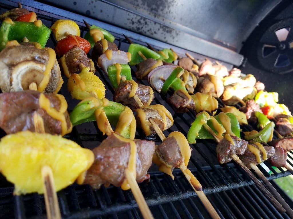 - Place on preheated medium-high heat grill, with some space between each kabob so they can get done evenly.