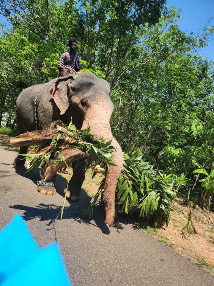 On our travel we saw the elephants walking in the roadside with some load stuffs,it was a great surprise to us.Actually we saw 2 elephants in the roadside one with that load stuffs and another with a traditional look, roaming with god statue.