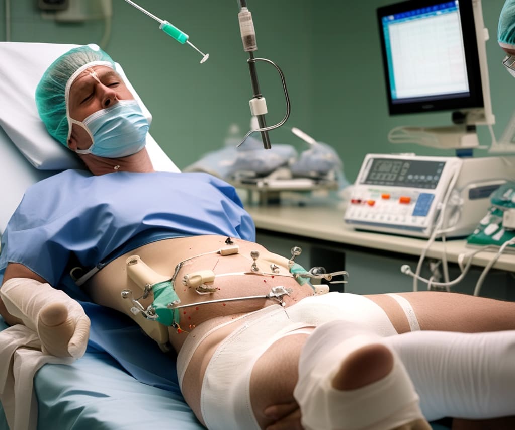 “Those are surely gonna be sore for awhile,” the urologist said, transferring care to the orthopedic surgeon who prepared plaster of Paris to immobilize Harper's pelvic ring. He hoped his six fractures and disarticulated femur head would heal with the help of a dozen titanium pins and screws.