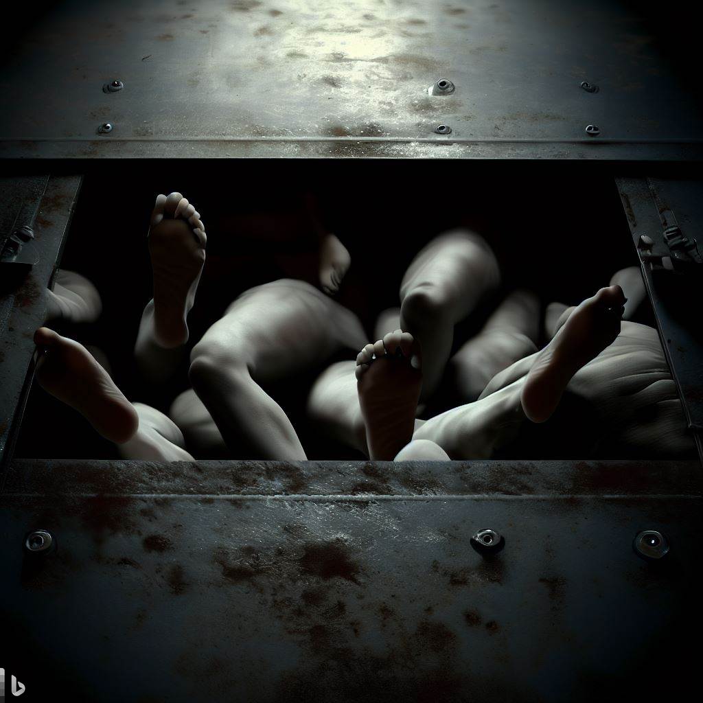 He banged desperately from below. He cried pitifully, scratching at the metal. He audibly choked on fumes.