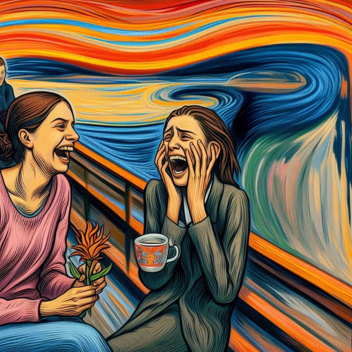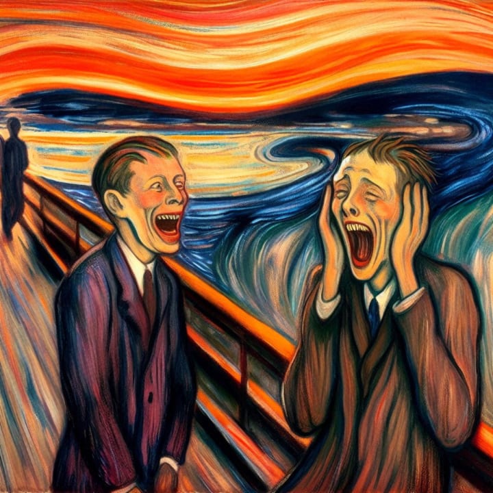 Answer. The you in the dream is your consciousness (ego). The joke teller is un/subconscious - the ghost in the machine. Studies have shown that even when we are awake, our subliminal self is making real time decisions for us that we take credit for and even invent stories explaining how and why we made decisions we really did not make. I love the Edvard Munch themed illustrations, Gerard. Bloody brilliant!