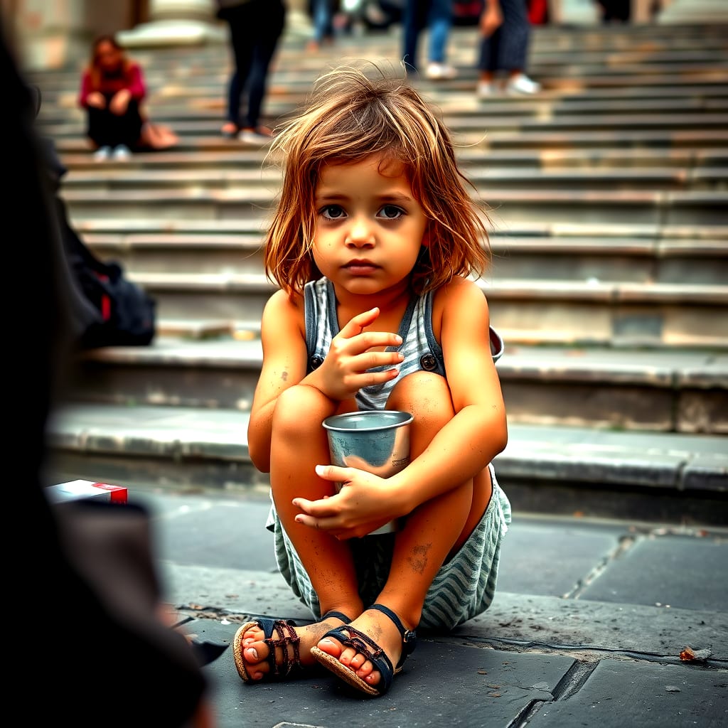 A child no older than six or seven, her legs were folded under each other unnaturally. It was obvious she had been born this way. She didn't speak. She only held out a tin cup for the tourists who were checking off another must-see on their Rome adventures.
