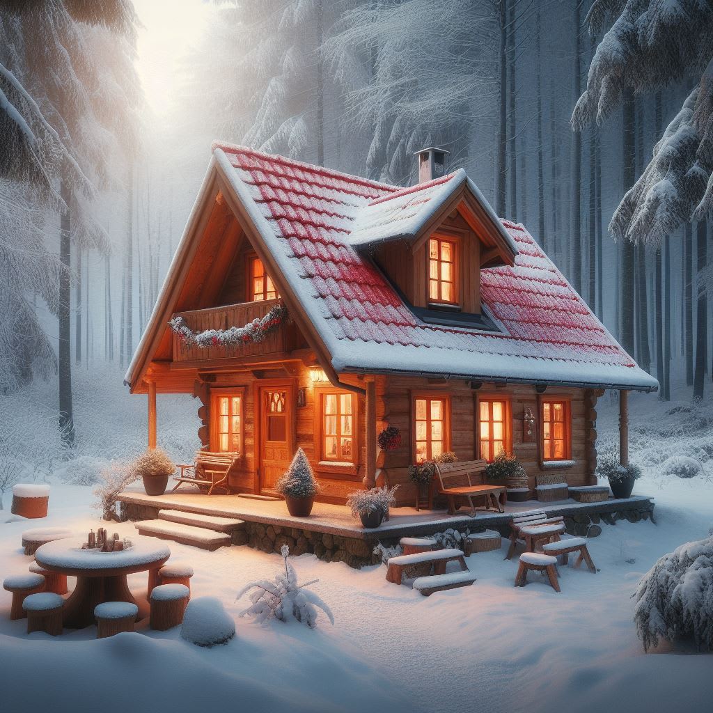 There it was, the cozy, small, red-roofed cottage nestled so peacefully in the fallen snow.