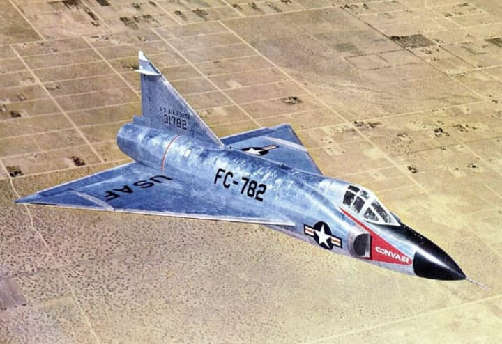 The "Century Series" Convair F-102 Delta Dagger was America's first all-weather supersonic jet fighter and the first American aircraft with a delta wing. When it first went into use in 1956, problems started right away. The F-102, which was designed to be a high-speed aircraft, was unable to reach Mach 1. As a result, the fuselage had to be redesigned to accommodate transonic wave drag. After the redesign, the jet was able to reach Mach 1.22, but there were still other issues that needed to be fixed. The Air Force did not apply uniform fixes to the F-102 fleet, which resulted in a wide range of F-102s' capabilities. The F-102’s biggest problem, however, was its safety rating. There were 1,000 F-102s made, but 259 of them were lost in accidents, resulting in the deaths of 70 pilots.