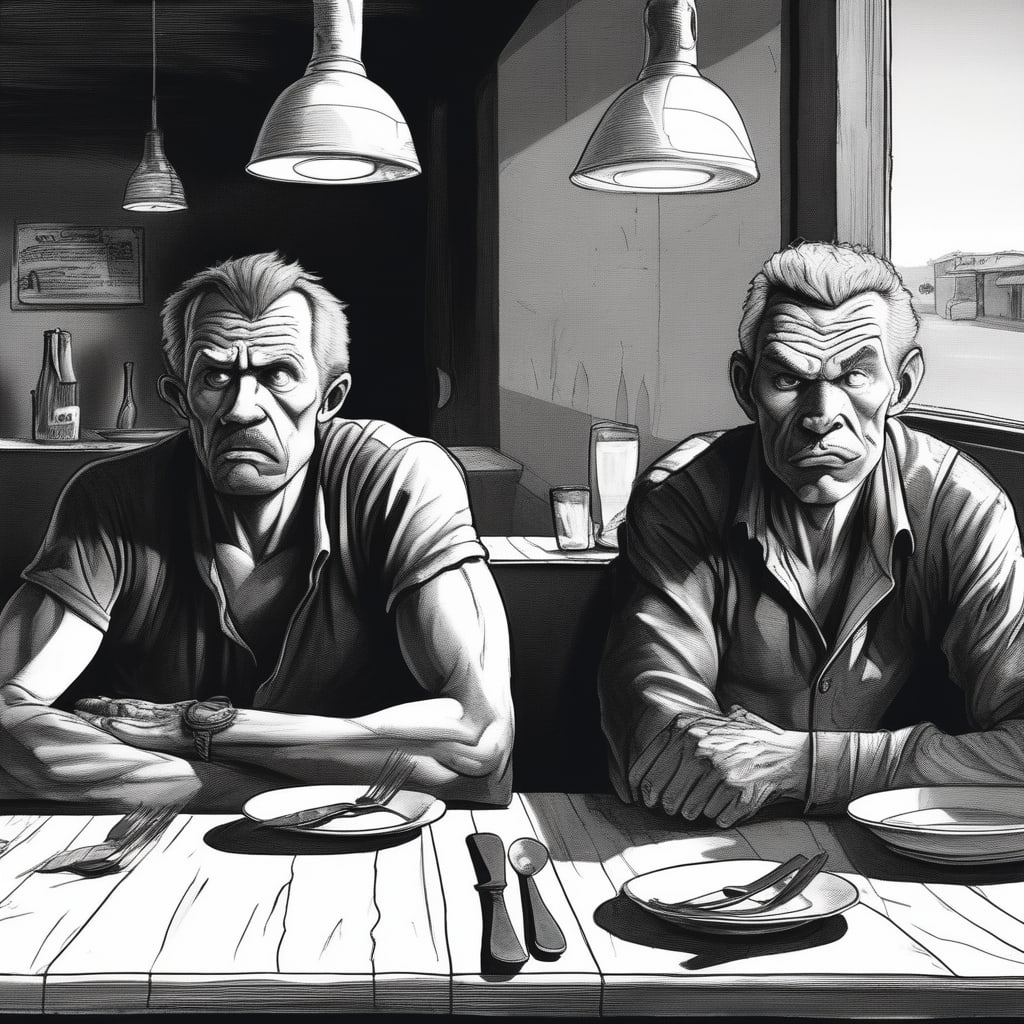 The orders took too long. Serial killers don't need reasons, but being hungry doesn't help. They both eyed the cutlery.