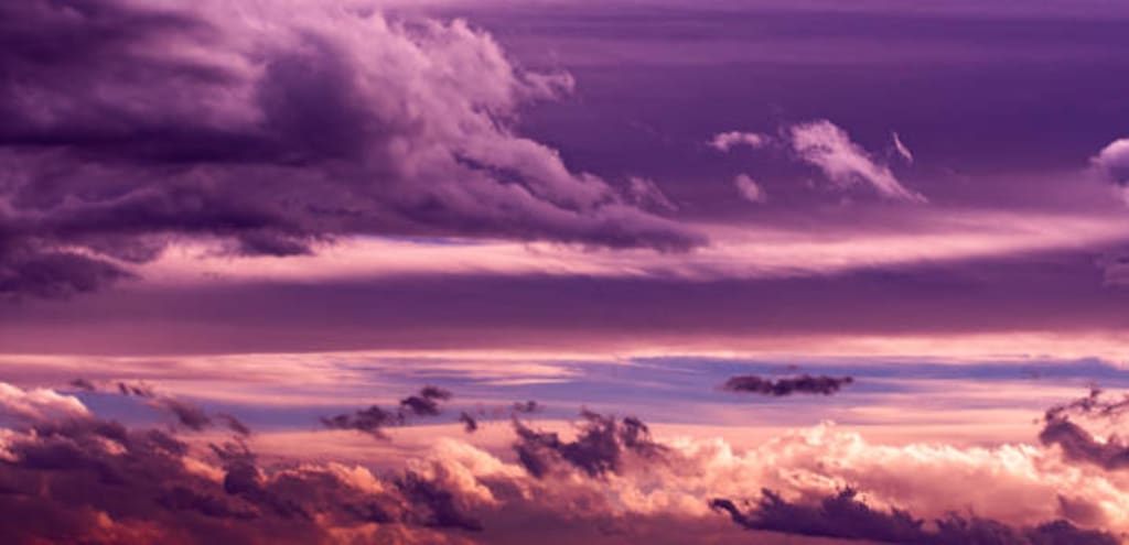 The cloudy sky gave her a sense of belonging as she soared over it. It dawned on her that the purple clouds were more than a natural occurrence; they were mystical beings hiding a hidden dance.
