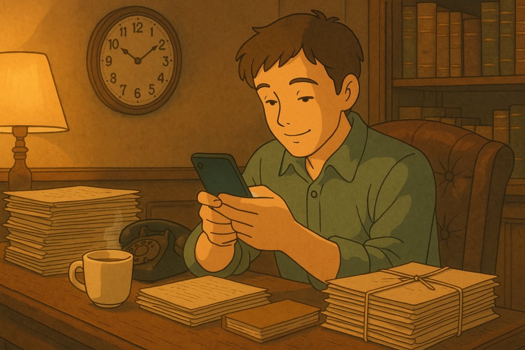 Reading the sender’s name, a glow spreads across his face. And his eyes light up. As if the one who messaged is quite important. He immediately picks up the phone. And opens the message. Types a reply. Sends it. Then another message comes, and again, he types a reply… This cycle continues.