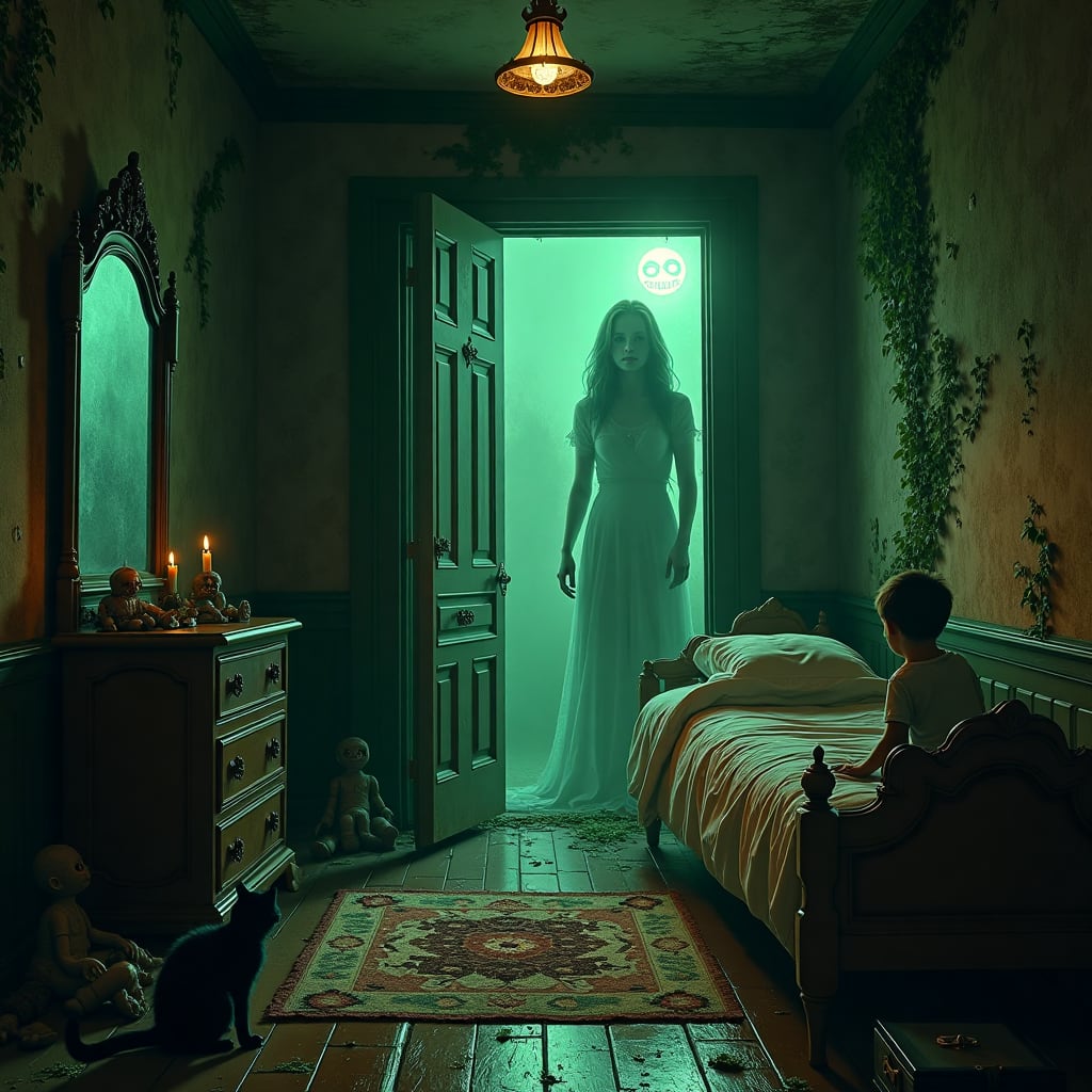 A week after they moved in, the basement door—previously stuck shut—swung open on its own. Lila's toys began appearing in strange places. The family cat refused to enter the parlor, hissing at empty corners. Every mirror in the house developed a film of grime no amount of cleaning could remove, and in their reflections, sometimes, something else appeared—something pale and distant.