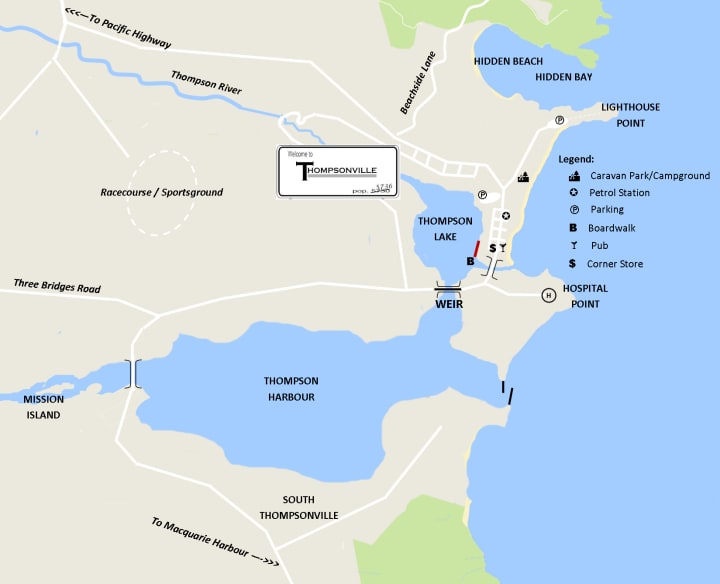 Located on the mid-north coast of New South Wales, about twenty miles north of the populous city of Macquarie Harbour, Thompsonville sits where the Thompson River meets Thompson Lake, which itself flows into Thompson Harbour, which then meets the sea. The founding fathers had been keen to leave their mark, and their name, everywhere, it seems.