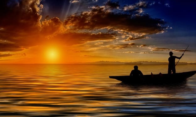 It was late in the afternoon and they both went and sat on the green branches of a tree to escape the heat. A lion was resting under that tree. And there was a big green field around the tree and a river was flowing by the side of the field.