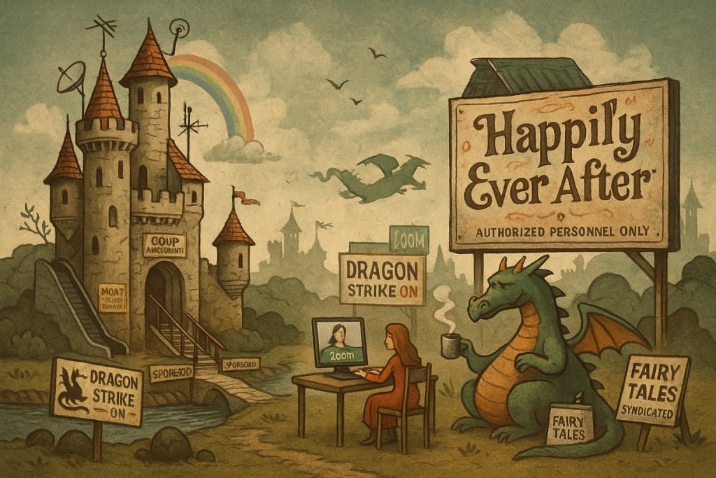 Curses have been bureaucratized. You’ll have to fill out Form 77B to apply for removal, and the processing time is six to eight weeks. “True love’s kiss” is no longer recognized as a legal remedy unless notarized by a licensed Enchanter. As for marriages, they are renewed annually by mutual consent, reviewed by a panel to ensure “narrative integrity” and “audience engagement.”