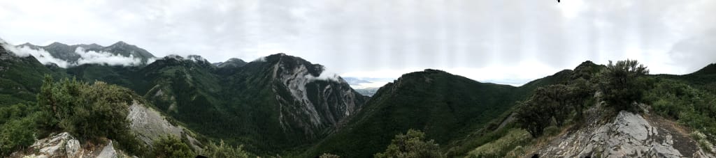 I pushed through the brush and found what appeared to be some small track leading up the side of the ravine. I took it and after several gasping stops made it back up and out onto the ancient overgrown road we had been moving up to get farther into the mountains.