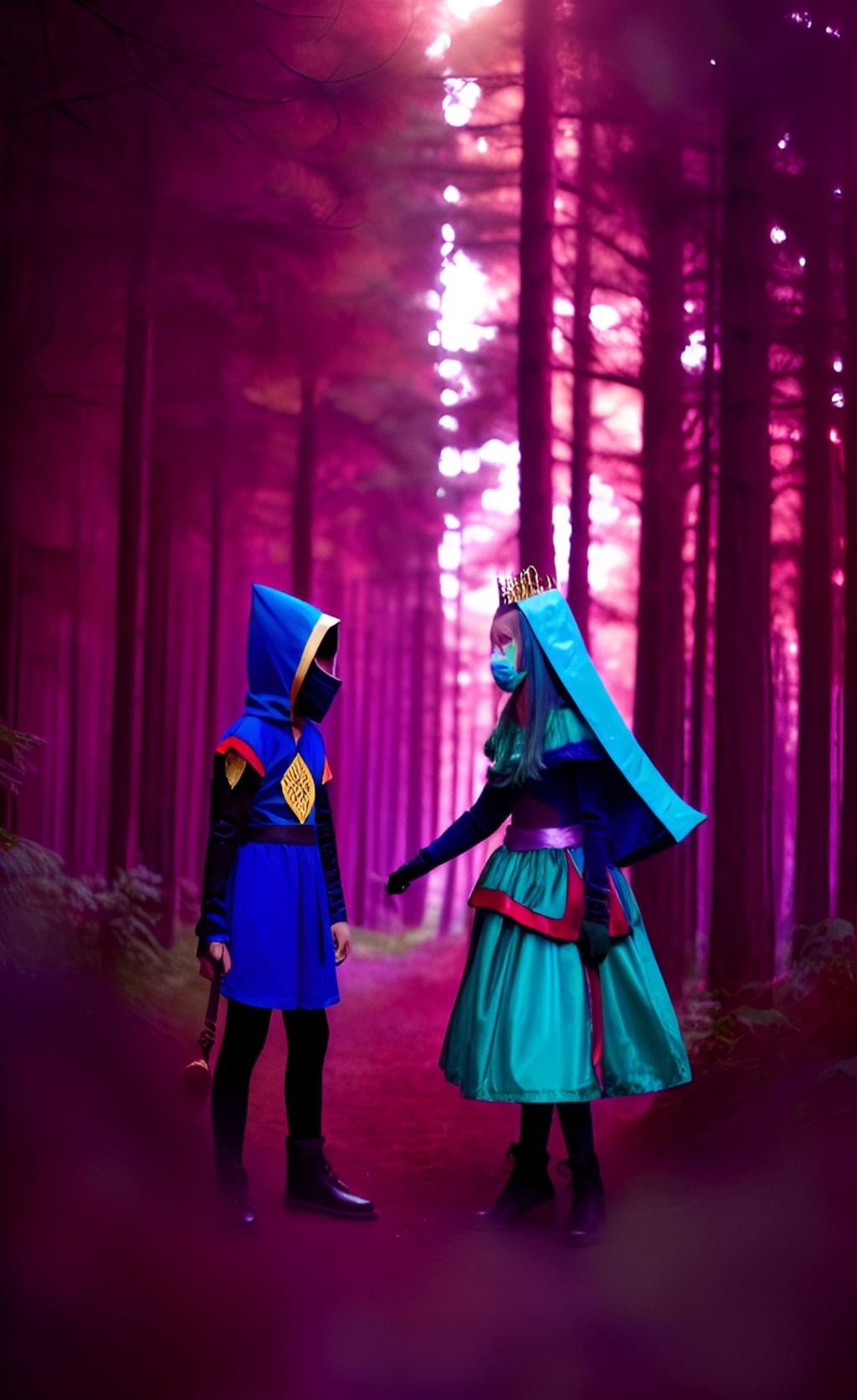 Heavy thuds follow as a boy steps from behind the old man’s shadow. He stands no taller than the man’s chin, decorated in their tribe’s knightly robes and armor of blue and black. A golden crest over his chest and an ambiguously black mask.