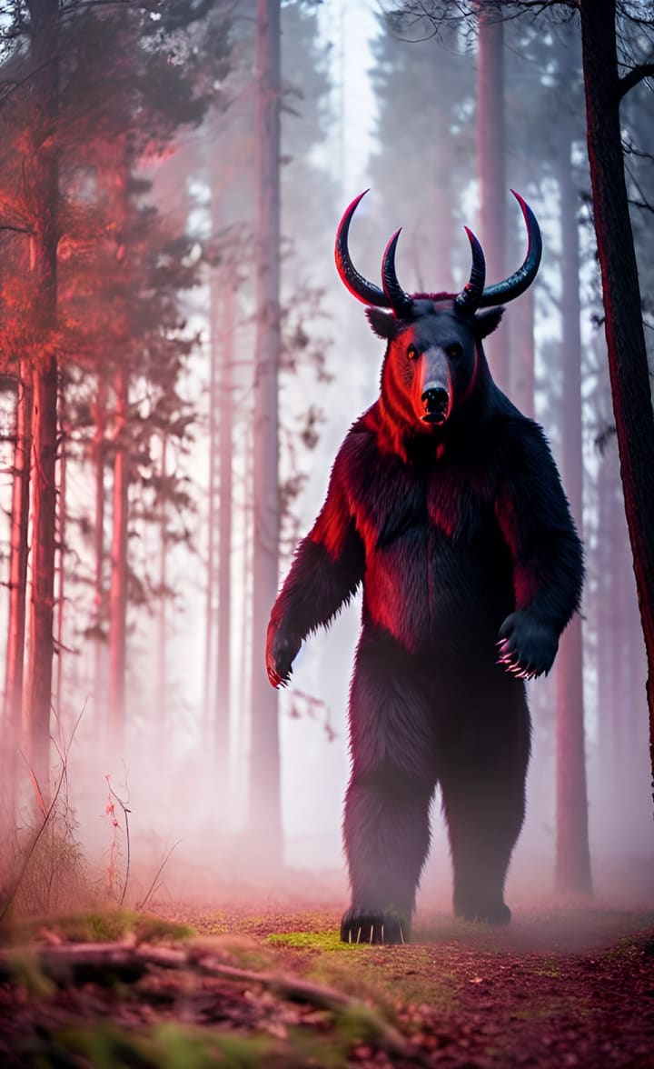 Slowly turning around, he faces something that resembles a bear, but the massive disaster he senses is nothing of an animal.
