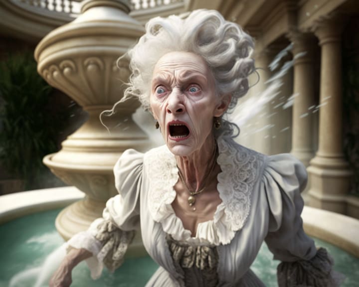 As he laughed, Mrs Arbuthnot could no longer bear to be in the same room with Lord Illingworth. She rose from the table and made her way to the ornate patio outside, her face so flushed with anger at the man’s impertinence she had to sluice her face with a splash of water from the fountain.