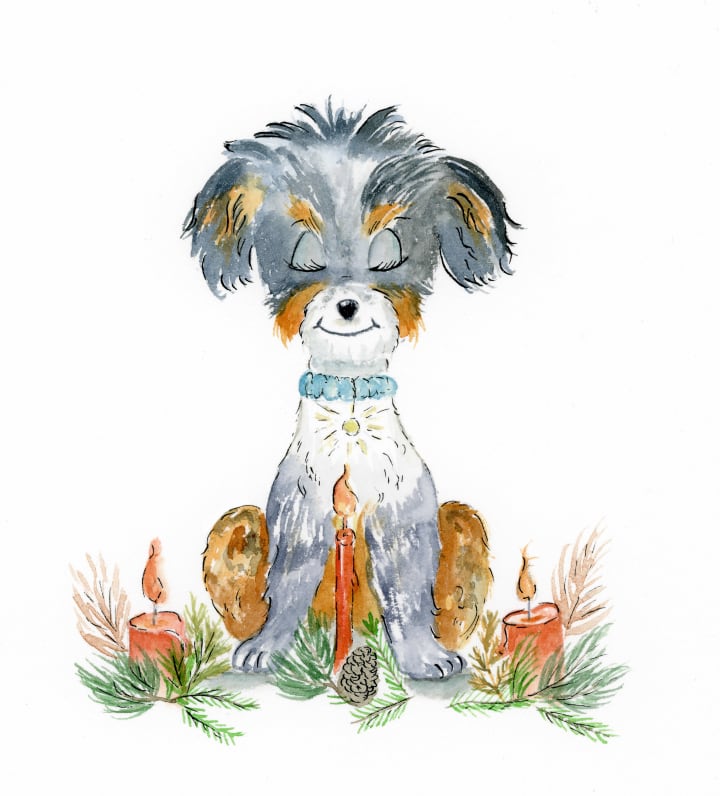 Hannah lit some Christmas candles and had Sheba sit still and practice being present for the moment.