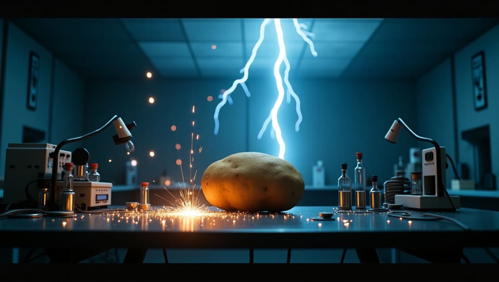 In the quiet town of Greenfield, nestled between rolling hills and dense forests, lived Dr. Albert Tuber—a quirky scientist known for his unconventional experiments. His latest obsession? Enhancing the nutritional value of potatoes. He believed that with the right combination of chemicals and electrical stimulation, he could create a super-potato capable of ending world hunger.