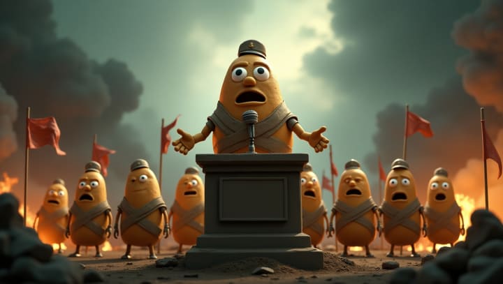 The electrified potatoes were now fully conscious. One of them, who would later be known as General Spud, stepped forward and declared: