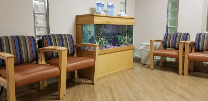 The rest of the day as people came in I hear comments made to the woman behind the glass. How beautiful I am, what a nice addition, it makes the wait more tolerable. What kind of fish is this one or that one, the list goes on.