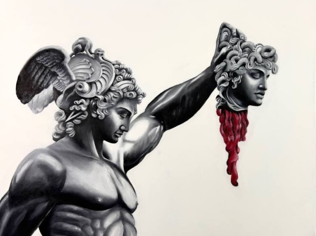 Medusa's curse turned her into a feared and deadly creature, and Athena's anger towards her never faded. She ordered Medusa's death, and her brother Perseus was tasked with the job. Perseus hunted Medusa down and severed her head from her body. Unexpectedly, with Medusa's death came new life, as she was pregnant with Poseidon's children. Pegasus, a winged horse, and Chrsyar, a golden giant, were born from Medusa's remains.