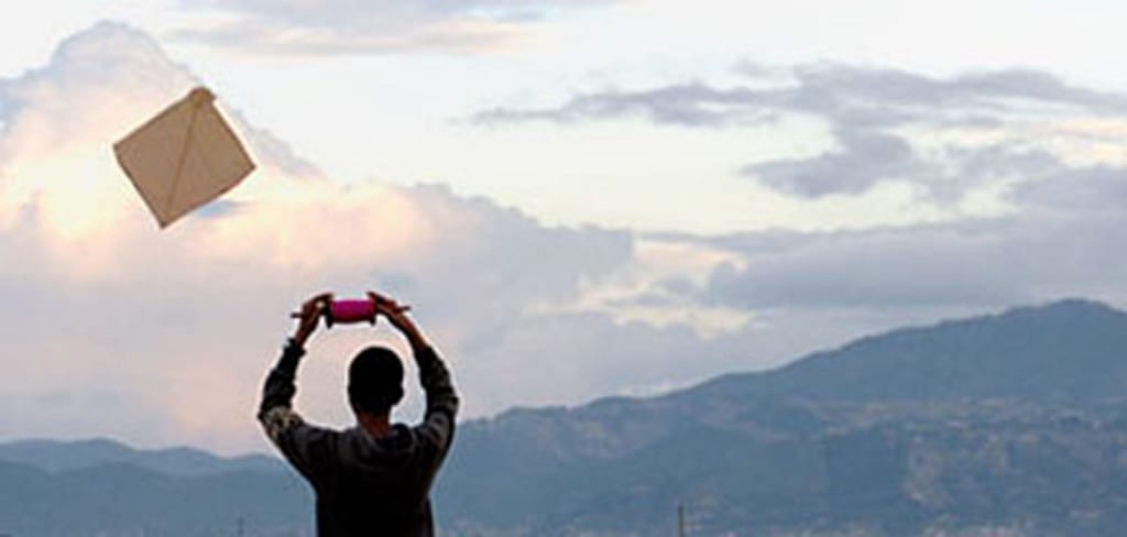 When the boy stopped shaking, the two did their own things. The son took out his cell phone and went on about the great reception; how many bars he had. The Forty-Sixer only felt a little anger at this, just a portion of what he had felt before. Mostly he just rolled his eyes. He took the kite out of his pack and assembled it in the lee of some rocks. The wind pulled it away and it flew.