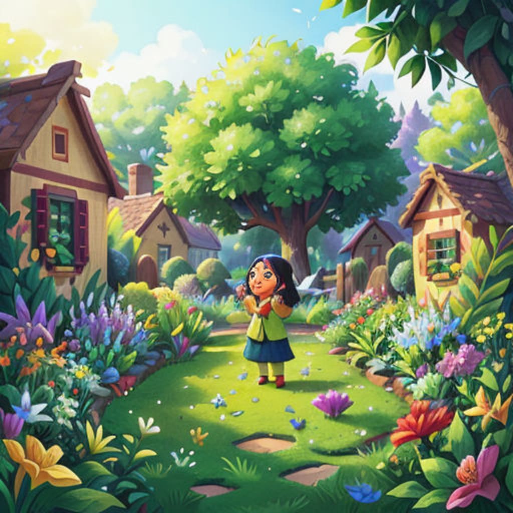 '' As she was watering the plants, she saw a rabbit hopping along the path.