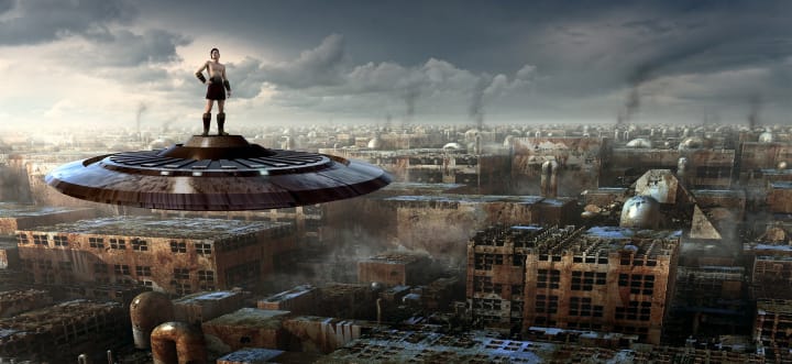 With a smile, Gala stepped onto the Flying Platform Lightspeed. Joe followed her and started the vehicle up, which with a gentle whirr rose from the flooring.