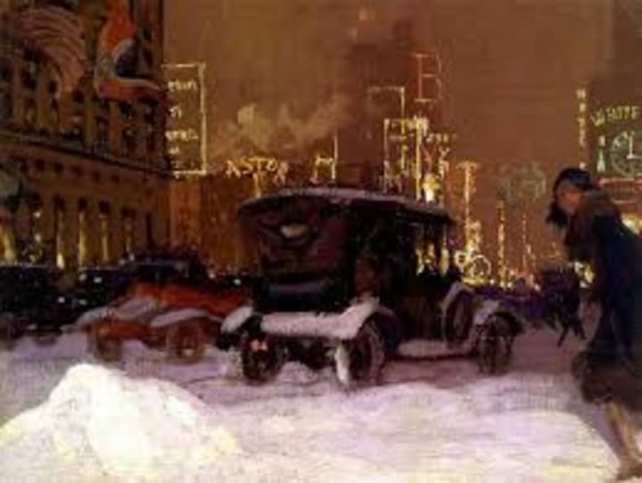 Open Rolls Royces collecting falling snow where they sat by the curb, slowly passing Fords, idle carriages with horses disingenuously considering the snowbanks in front of them—all were listening very carefully to Audrey Munson and trying not to be caught.