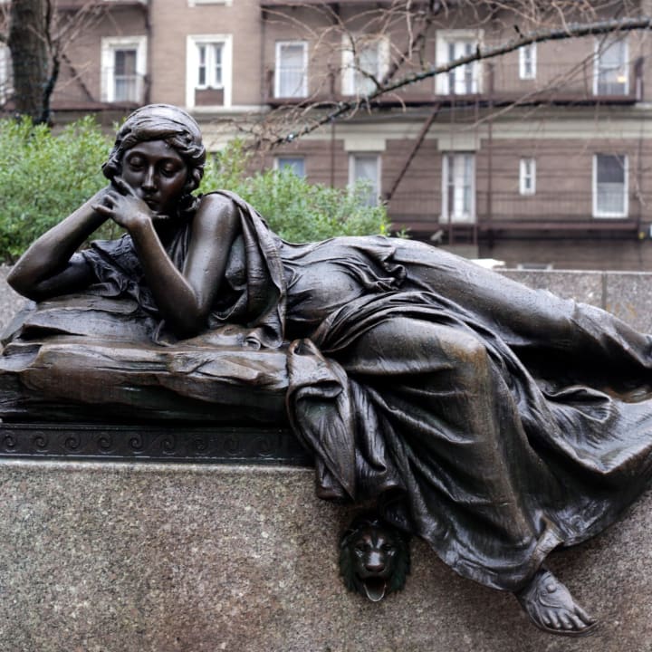 “Thank you. And here we have a memorial to the director William Straus by Henry Lukeman, in beautiful black stone.”