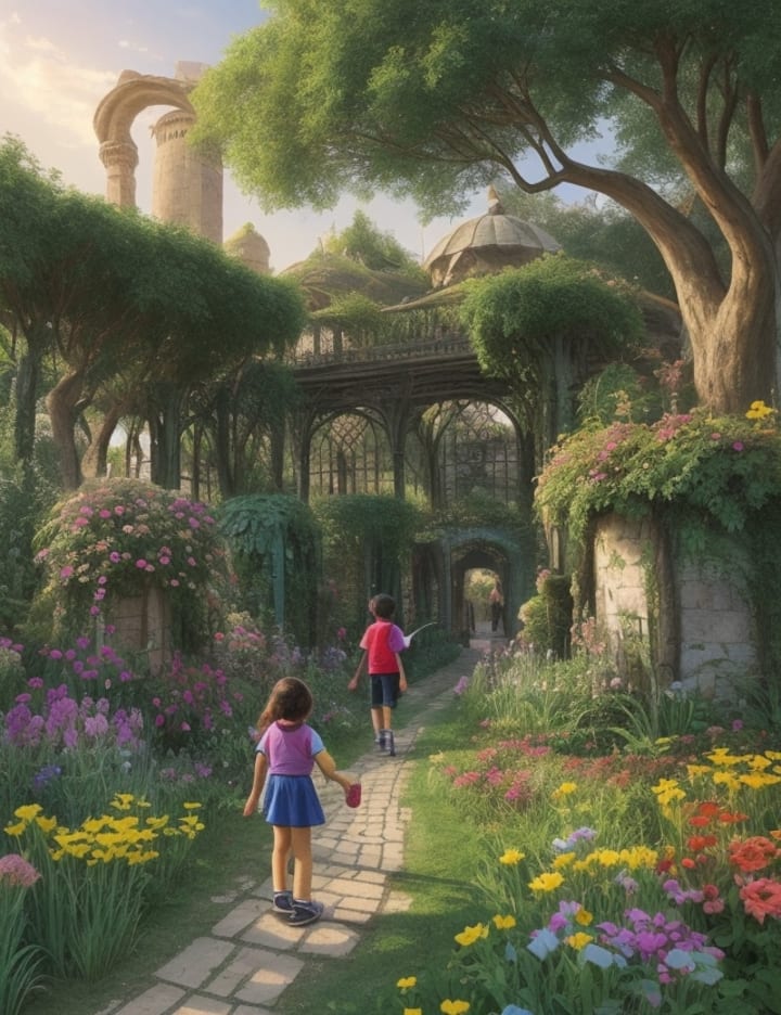 As they ventured deeper into the heart of the town, they stumbled upon Mrs. Thompson's garden, where the most magnificent flowers bloomed in a riot of colors. Khawli, always the curious soul, tiptoed towards the flowers, his eyes wide with wonder.