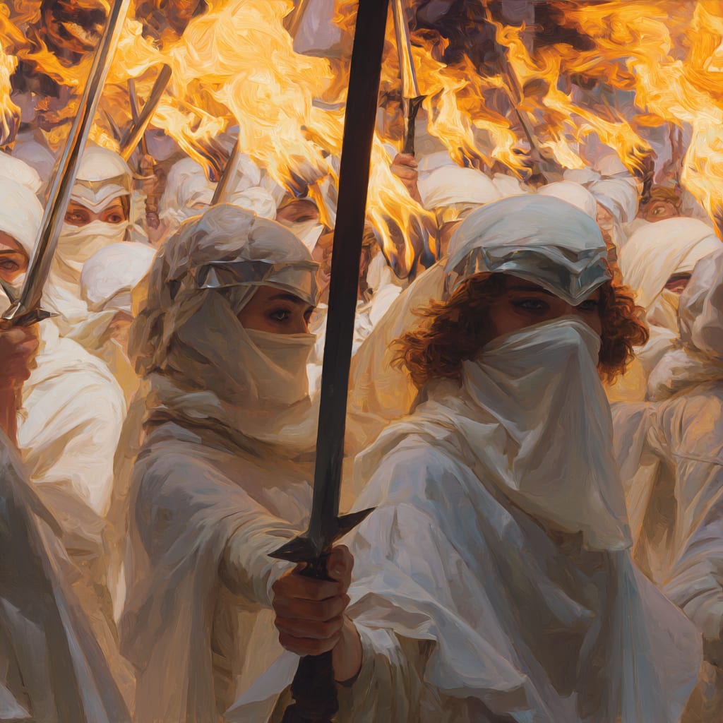 I follow at a distance, the way ink follows a scribe between breaths. Stone sweats at this hour. The Pyres reach high. It was Lirha, the legend says, who convinced the flames to keep chanting after the world lost the patience to.