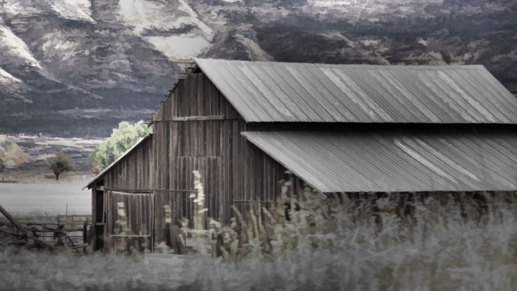 “Mary, dear, are you out here?” Ted asks as he rounds the corner of the barn and enters through the large open sliding door. The barn was once a bright red color but was so worn that it has most of the paint missing, making it a brown color now. The roof has a leak, and the flooring is rough dirt, but he still loves the old thing.